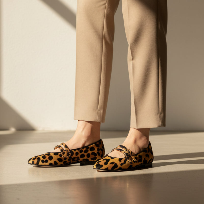 • Tomaia in camoscio stampa leopard